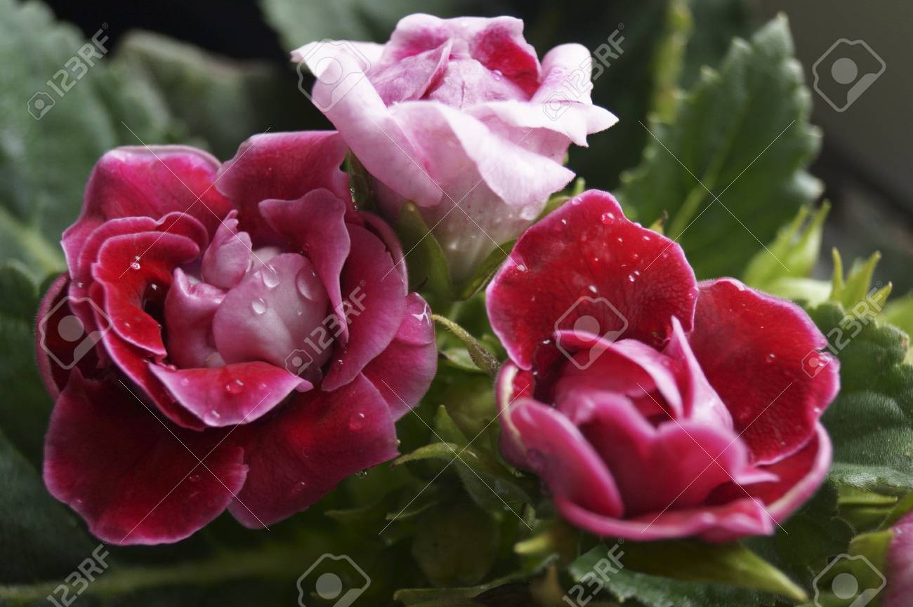 Beautiful Red And Pink Flowers Gloxinia Sinningia Hibrida Stock